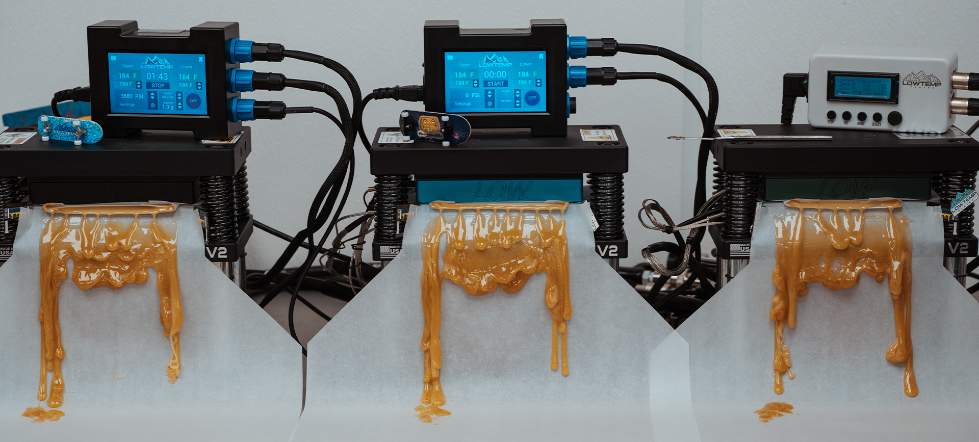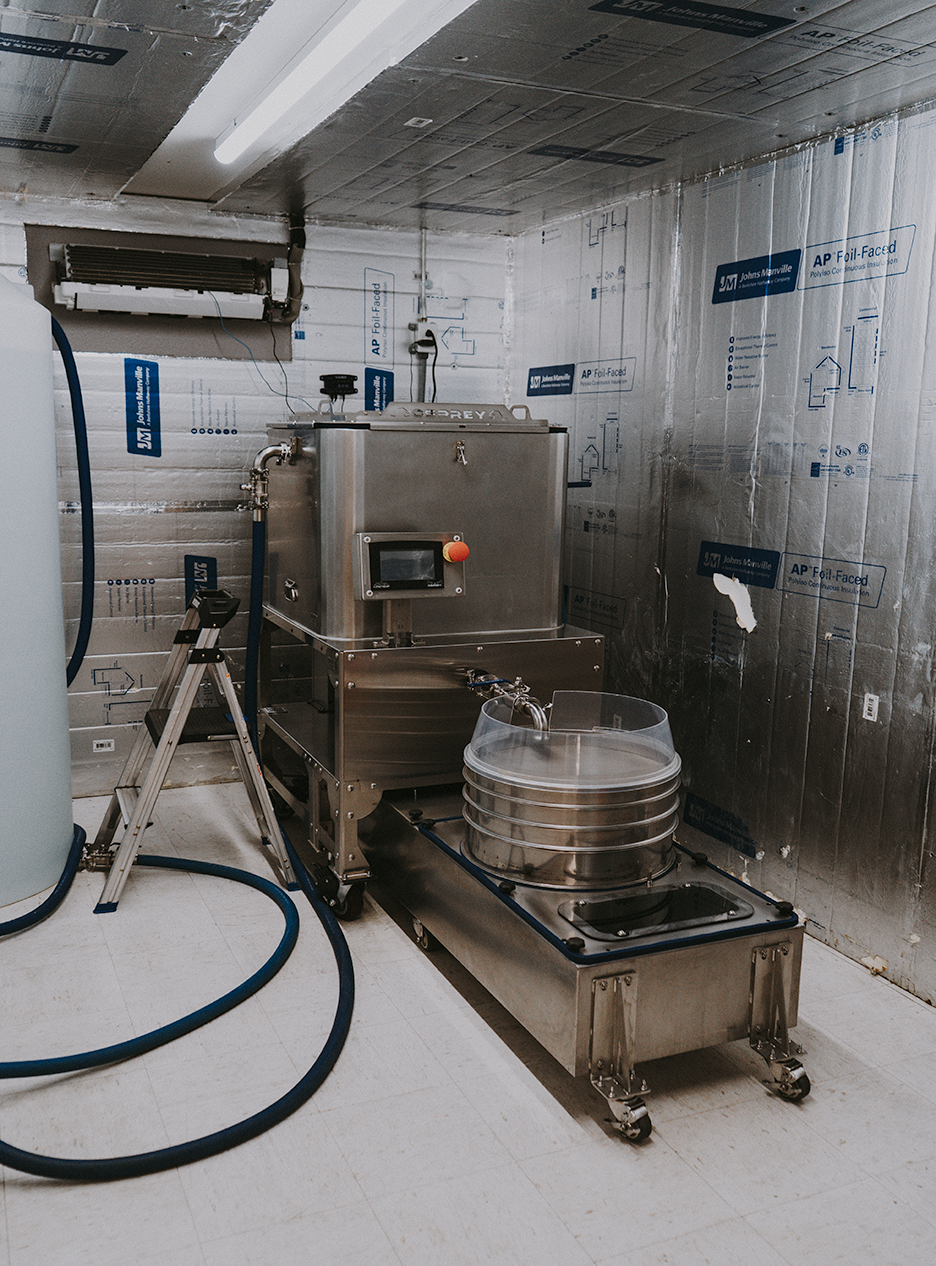 Powered by a 75-gallon Osprey by Low Temp Industries. 2 Harvest Right freeze dryers, 3 Low Temp V2 Rosin Presses, and a team of hard working hash lovers. Couchlock Concentrates keep our lab tidy, efficient, and fun.